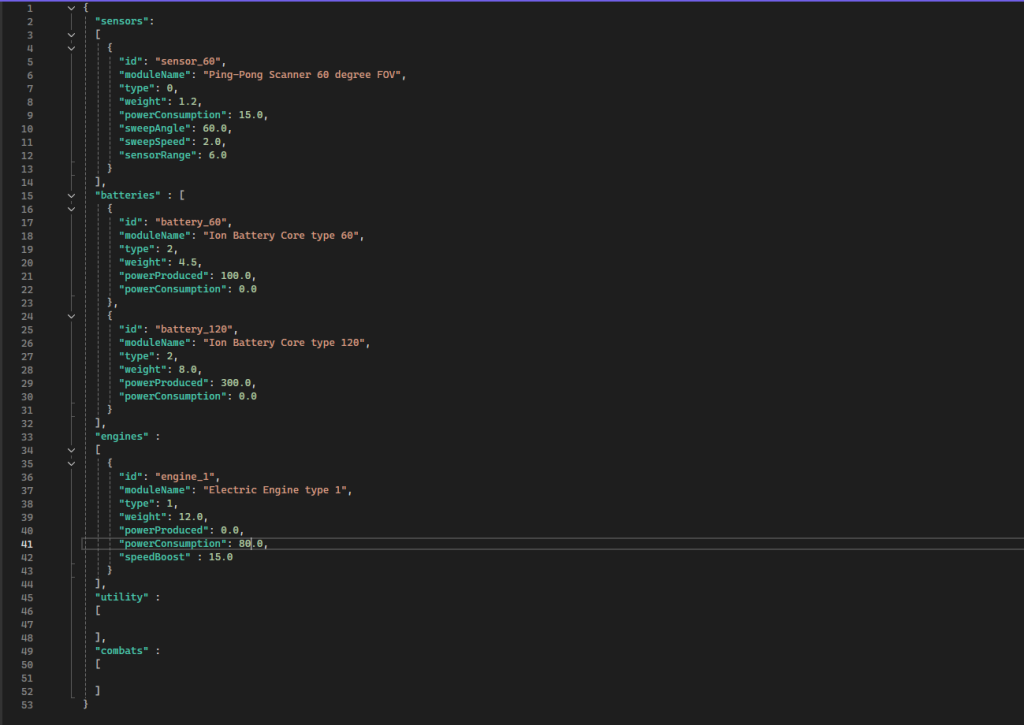 - Modularity : Each component (Sensor, Engine, Battery) now has its own physical profile in JSON. This allows me to balance the game without touching the code.